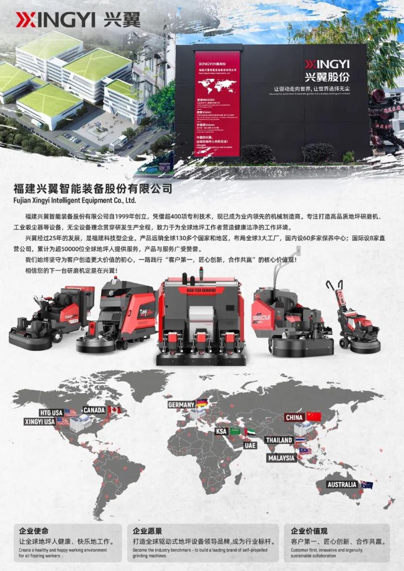 As a leading manufacturer in the floor grinding equipment and solutions sector for over two decades, Xingyi has consistently driven growth through technological innovation. The company's service network now spans more than 130 countries and regions.